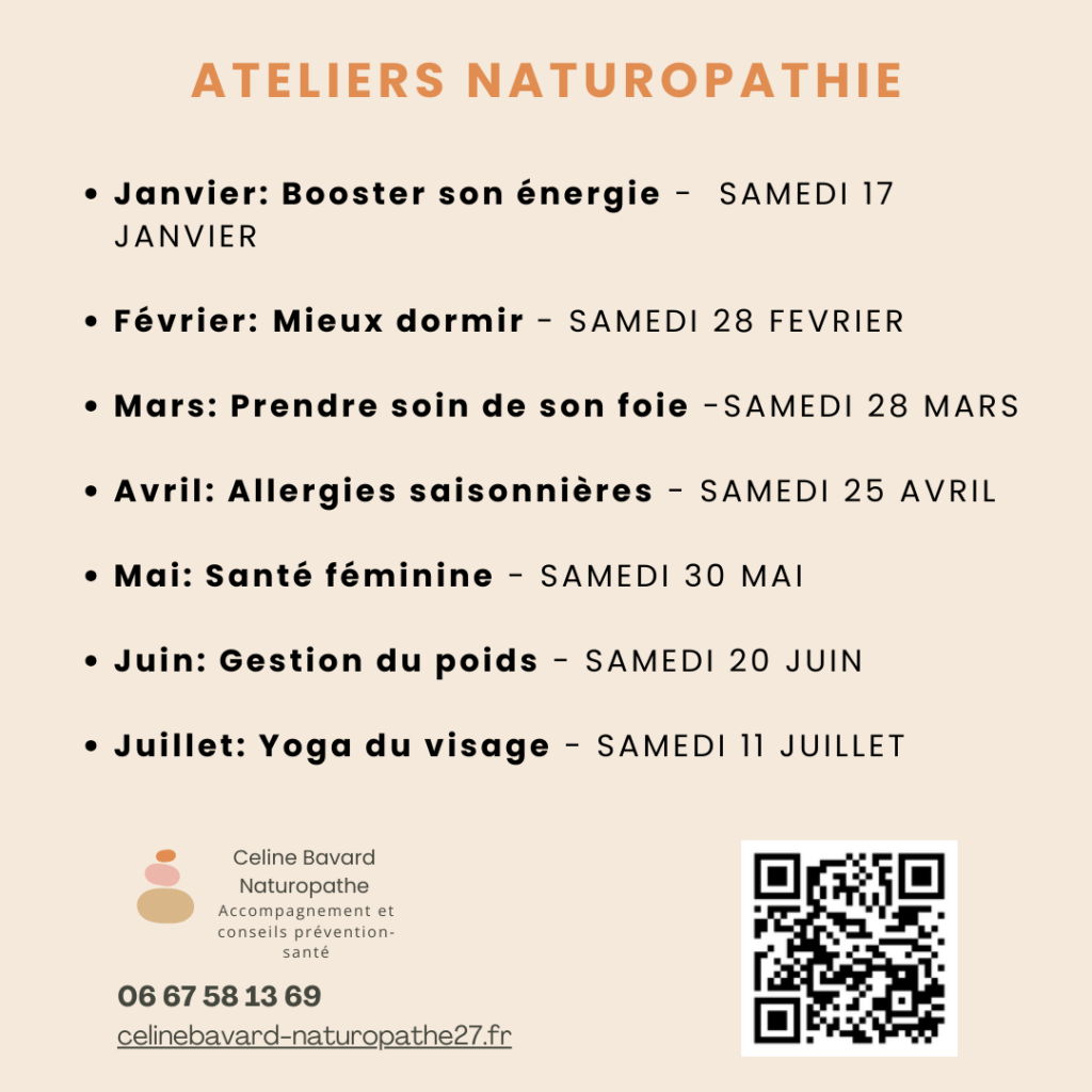 Afin de partager les principes de la naturopathie au plus grand nombre, je vous propose des ateliers sur des thèmes variés.